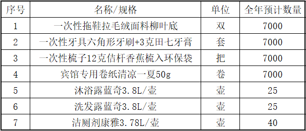 1、項目名稱: 2024年咸寧廠區古樓客棧客房低值易耗品定點采購項目